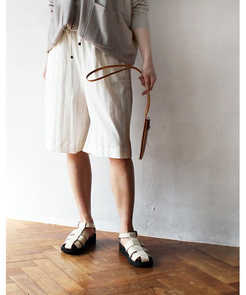 『マイノリティファン』のオリジナルブランド『L'Ancre(アンカー)』の新作、ピンストライプのショーツ。 久々にショートパンツ履きたい衝動にかられて、今の自分のシルエットや気分に合うモノを作りました。 股上を思い切って深くして、イージーなシルエットにしつつも、ピンストライプとパイピングなど細かいディティールでトラッドなキチンとした雰囲気に。 ウエスト位置は、ハイでもローでも履けますし、着丈の変化もあるので、膝を出す出さないも重要ですし、トップスとのバランスに合わせてお楽しみください。 minoriTY-funにしかない、『L’Ancre』は日常着であるとともに、大人のカラダをバランス良く見せるシルエットと、ちょっと気の利いたデザインでお洒落ゴコロをくすぐる服を作ります。 (着用モデル身長:163cm)