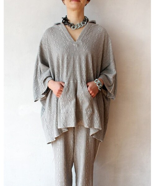 『マイノリティファン』のオリジナルブランド『L'Ancre(アンカー)』の新作です! マイノリティファン定番で人気のケーブルシリーズ。 今回は、柔らかくてストレッチのきいたケーブルジャーガード素材を使用。 メキシカンパーカーは、70年代に西海岸のサーファーカルチャーの中で生まれた、アイコン的アイテム。 もともとは、メキシコの伝統生地(セラーピブランケット)の上着を着ていたローカルスタイルを、アメリカ西海岸から波を求めて南下してきた若者たちの中で、海上がりに気軽に着られるものとして真似したことがきっかけ。 持ち帰り、ヒッピームーブメント・ドラッグカルチャーとともに70年代のアイコンとなり、その後サーファーファッションからハイファッションまで広がった。 ネックデザインがVネックになっているので、一般的なフードパーカーよりカジュアル感が抑えられています。 さらに、パイピングでトラッド感のあるキリっとしまる印象に。 Tシャツやシャツとのレイヤードから、一枚で着るまで楽しめるポンチョシルエットです。 同素材のイージーパンツとのセットアップでも着こなせませす。 もちろん、単品で別々にも着回しがし易いので、着こなしの幅は広いです。 minoriTY-funにしかない、『L’Ancre』は日常着であるとともに、大人のカラダをバランス良く見せるシルエットと、ちょっと気の利いたデザインでお洒落ゴコロをくすぐる服を作ります。 (着用モデル身長:163cm)