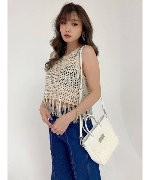 【商品コメント】透かし編みのテープヤーンにフリンジがポイントのトップスです。 涼しげな編み地に夏らしいカラーを追加しました。 【コーデ】 透かし編みなので、インナーにリブベアビスチェなどを入れてください。 お腹は少し見せたほうがバランスが良く可愛いです。 ※着用画像はフラッシュの加減で実際の製品と色味等が異なる場合がございますので、生地のズームアップ画像をご確認ください。 ※ご利用の端末画面の設定により実際の商品と色味が異なる場合がございます。 【商品特徴】 透け感:あり 伸縮性:ややあり 生地の厚さ:薄手 サイズ感:普通 裏地:なし ポケット:なし 【 お買いものにおすすめの便利機能! 】 ♥商品のお気に入り登録 完売カラーの再入荷時や、ラスト1点の時、セール開始時にお知らせします。 ♥ブランドのお気に入り登録 新商品や再入荷、セール情報など、いち早くブランドのお得な情報を受け取ることができます。 ぜひご活用ください!