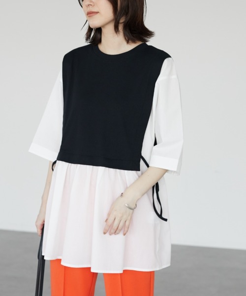 ベスト風のテレコ地をドッキングした異素材コンビのチュニックです。1枚で重ね着のようなスタイリングが楽しめるデザイン性も魅力的なポイント◎サイド結ぶコードリボンや裾のふんわりシルエットで、女性らしいフェミニンな着こなしに。長めの丈感で気になるラインもカバーしつつ、こなれ感のある着こなしが楽しめるアイテムです。【素材】透け感[やや有り]裏地[無し]伸縮性[無し]光沢感[無し]生地の厚さ[薄手]付属品[無し]ポケット[無し] ● Green Parks ●(グリーン パークス)20以上の人気ブランドを取り扱うアパレルセレクトショップ。ベーシックながらもさりげなくトレンドを取り入れたオリジナルブランドchocol raffine robeも展開。▼ 商品のお気に入り登録がおすすめです ▼商品ページ内のハートマークをクリック。完売時の再入荷や、最後の1点の通知、コーディネート画像がアップされたとき、お得なお値下げの際の通知を受ける事ができます。【お知らせ】ページでも通知が確認できます。
