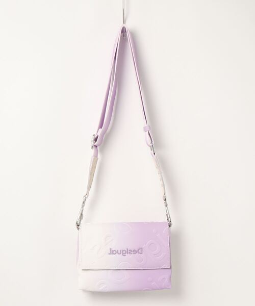 グラデーションデザインのミニクロスボディバッグ。全体にロゴレリーフをあしらい、3つのコンパートメントと内ポケットを用意しました。レザー調素材のストラップと布地ストラップ付き。 【Desigual/デシグアル】 バルセロナ発のファッションブランド「Desigual(デシグアル)」。スペイン語で“他とは違う”という意味が現すとおり、他のブランドにはない地中海をイメージさせるカラフルな色使いやエキゾチックなパターン、パッチワークやデニムなど着る人の個性を引き立てるアイテムを展開。デイリーにも、ドレスアップにも活躍する幅広いデザインが魅力。レディースだけではなく、メンズやシューズなど幅広いラインナップを展開。ブランド名にもなっているDesigual(他とは違う)は、自分自身が他の人と違うことがどれだけ大切で楽しいことなのかを改めて感じてもらいたいという私たちの願いが込められています。 自由で楽しく、カラフルで前向き。本当の自分を呼び覚ます鮮やかなカラーやプリント、他とは一味違うスタイルはファッションを楽しくするものばかりです。