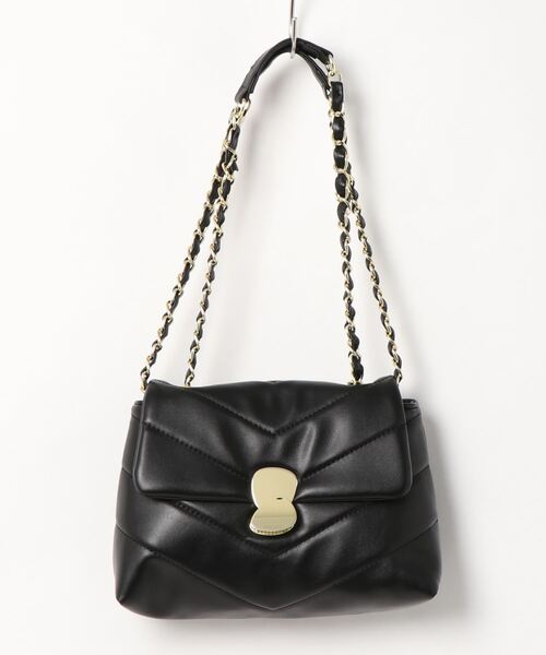 エレガントな雰囲気バツグンなチェーンショルダーバッグ。フラップのアートような開口部の金具パーツがポイント。小振りなサイズが可愛らしく、貴重品など日常に必要が物が入れられます。色によって素材が異なります。ブラックとホワイトのツイード2色、アイボリーのキルティング1色の、計3色をご用意しました。