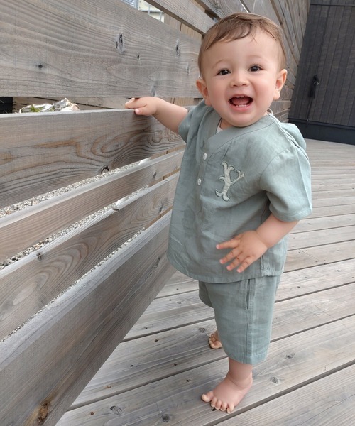 ベースボールシャツのトップスとボトムがセットになり、おしゃれなセットアップとしても着ていただけるアイテムです。大き目のイニシャル刺繍もポイント♪ゆるっとしたシルエットと素材感でリラックスタイムにもピッタリです◎こちらは80cm~の展開です。◆お気に入り登録について気になる商品のカラー/サイズの?マーククリックしてお気に入り登録をしておくと、再入荷やオトクなタイムセールのご案内などを受け取ることができます♪◆ブランドのお気に入り登録について新商品やお得なタイムセール、クーポンなどのご案内を受け取ることができます♪あわせてぜひご登録ください☆