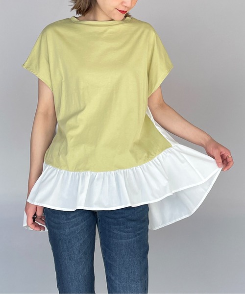 ふわっとシルエットが可愛い切替えプルオーバー。 身頃はコットン100%の生地を使用し、 裾やバックに布帛生地をドッキングしたデザイントップス。 布帛部分にギャザーやティアードデザインを施し、 ふんわりとした可愛らしいシルエットに。 ウエスト周りをカバーできる着丈もポイントです。 スッキリスキニーパンツ合わせや、 テーパードでキレイめ、ワイドパンツで大人カジュアルなどにも◎ ※撮影場所や明るさにより 実際の商品と色味が若干異なる場合がございます。 ☆商品のお気に入り♡登録を押せば ”再入荷通知”や”残りわずか通知” 値下げのお知らせが届きます! お気に入りのブランド登録していただければ新商品入荷のお知らせも届きますので 是非登録してみて下さい。