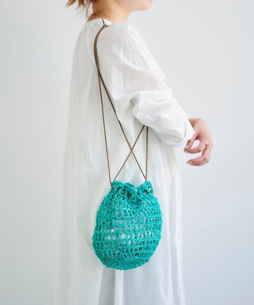 【BAGMATI(バグマティ)】 2010年にスタート。 BAGMATIのかごバッグは、東南アジアの島国、フィリピンで作られています。 地元の自然素材を使い、古くから生活の中で作り上げ伝えてきた加工方法や編みの技術と、世界のトレンドやBAGMATIらしさを融合させたものづくりを続けています。 BAGMATIのネットバッグです。 夏らしい素材感でスタイリングにプラスすればグッと夏らしい印象に! 小ぶりの巾着型は今年らしさたっぷりで華やかなカラーもありスタイリングにアクセントをプラスしてくれるバッグです。