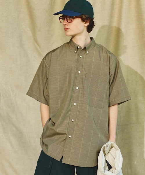 【オーバーサイズにデザインしたボタンダウンシャツ】大きくデザインした胸のパッチポケットの中に小さなモバイルポケットを配し、シンプルながらも使いやすいディテールを加えております。サングラスホルダー付き。【DAIWA PIER39 / ダイワ ピア39】「大自然」と「都会をシームレスに繋ぐ架け橋」 という考えを提案するこのラインは、都市生活を満喫するためのデザインと、 フィッシングを楽しむためのアイディアが共存するアパレルコレクション。 これまで培ってきたフィッシングシーンでの経験の中に見出した発想を、 日常というフィールドの中でもサポート出来るこだわりが細部にまで表現されている。 釣りという趣向から生まれたリアルクローズが 「DAIWA PIER39(ダイワ ピア39)」。シーズン:2022 S/S