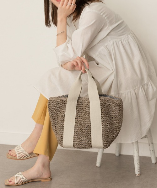 デイリーに使いやすいペーパートート テープハンドルがワンポイントになった夏らしいバッグ。 どなたでも取り入れやすいベーシックなデザインながらも、1点投入で一気にシーズンムードが上がります。 荷物がしっかり入るサイズ感と合わせやすいカラーも嬉しいポイントです。 ※この商品は、摩擦や汗、雨などの使用条件等により、色落ちや他の物への色移りの可能性がございますのでご注意ください。 ※直射日光や蛍光灯に長時間あたると変色したり、色褪せすることがありますのでご注意ください。 ※その他お取り扱いに関しましては、商品に付属のアテンションタグをご覧ください。 総重量 : 約330g ※商品画像は、光の当たり具合やパソコンなどの閲覧環境により、実際の色味と異なって見える場合がございます。予めご了承ください。 ※商品の色味の目安は、商品単体の画像をご参照ください。 ▼お気に入り登録のおすすめ▼ お気に入り登録商品は、マイページにて現在の価格情報や在庫状況の確認が可能です。 お買い物リストの管理に是非ご利用下さい。