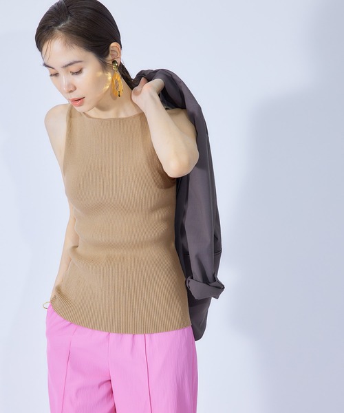 【素材】 柔らかくなめらかなタッチのレーヨンナイロン糸にストレッチ糸をプレーティングして更にキックバックを良くしたリブ素材。快適なフィット感とイージーケアが魅力のタフな素材です。 【デザイン・シルエット】 ニットならではの上品な仕立てが魅力のプルオーバー。すっきりとしたボートネック、ややアメリカンスリーブでヘルシーな印象に。カップ付きなので1枚着としてもアンダーウエアを気にすることなく安心して着ていただけます。 【カラー】 クリーンなベーシックカラーにピスタチオグリーンを加えた4色展開 【おすすめのスタイリング】 ジャケット、セットアップのインナーとして。スカートでもパンツでもスタイリングしやすいシンプルアイテム。 ---------------------------- 透け感:なし 裏地:カップ部分のみ裏地あり 伸縮性:あり 光沢感:なし 生地の厚さ:薄手 ポケット:なし 洗濯方法:手洗い ---------------------------- 【モデル情報】 モデル身長:167cm着用サイズ:38 ※画像の商品はサンプルです。 実際の商品と仕様、加工、サイズが若干異なる場合がございます。 ※室外で撮影している画像は、光の影響で色味が若干異なって見える場合がございます。 ※商品のカラーは画像の色味をご参照ください。動画は仕様説明のため、色味が実物と異なる場合がござます。
