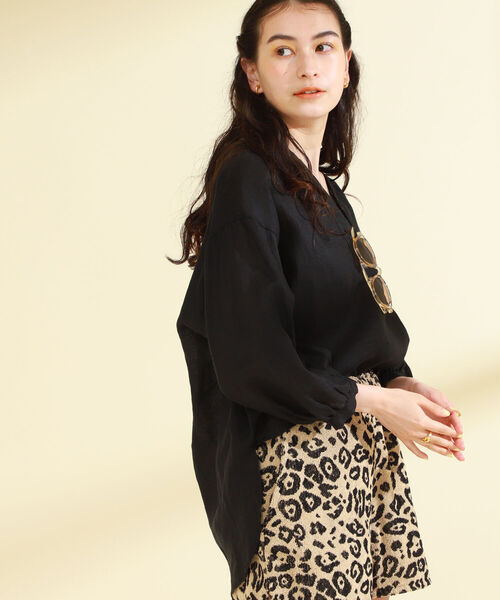 こなれたラフさがポイント毎年大人気のリネンシリーズが登場。今年からフレンチリネンを使用し、襟は深めのスキッパーにすることですっきりとした印象に。ボリュームがあるスリーブなので肌にも触れにくく、暖かい季節でもさらっと着用いただけます。大人のカジュアルスタイルにぴったりのひと品です。WHITE・YELLOW BEAMS STAFF:H158 Size:ONE SIZEBLACK Model:H166 B83 W63 H85 Size:ONE SIZE