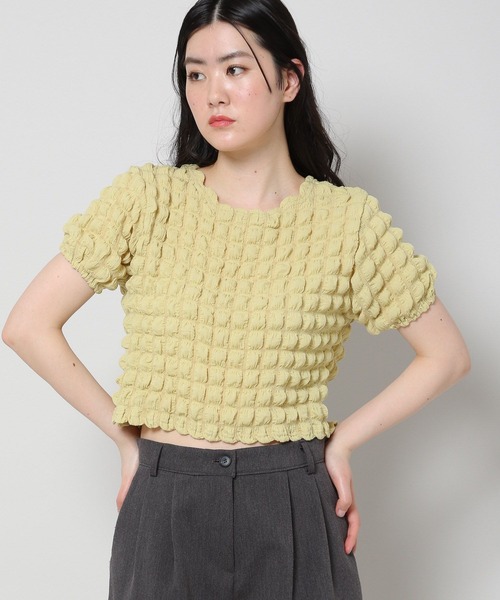 ーーー立体的なエンボス加工が施された短丈トップスーーー【POINT】・ジャストサイズのボックスシルエット・クロップド丈なのでハイウエストボトムスと相性◎・1枚でも存在感のある夏に大活躍のアイテム【スタイリング】インパクトのある生地感にはシンプルなボトムスが◎定番のデニム生地はもちろん、ロングスカートと合わせて韓国綺麗め女子風スタイルもオススメです。キャミソールワンピースやベストのインナーとしての着用でエンボス生地のポイント見せも効果的です◎【スタッフ着用コメント】STAFF:yume身長:165cm/体型:やせ型/骨格:ウェーブ/着用サイズ:FREE■生地感軽く、伸縮性に優れた生地感。しわになりにくく目立たないのでお手入れも楽々です!■サイズ感程よいクロップド丈でウエスト回りをスッキリと見せてくれます!165cmでおへそより上だったので、低身長さんでも問題なくお召しいただけます◎インパクトのある今年っぽいデザインで、この夏大活躍の1枚です♪・・・・・・・・・・・・・・・・・・・・・・透け感:アイボリーのみややあり裏地:なし伸縮性:あり生地の厚さ:普通・・・・・・・・・・・・・・・・・・・・・・<3.3 Field Trip/3.3フィールドトリップ>ブランド名にある3.3はその名の通り「3.3平方メートル」を意味し、3.3 Field Tripと一緒なら、いつでもどこでも快適にリラックスできるという意味が込められています。「We love Brooklyn」をモットーに、実用的でありながらスタイリッシュなルックとナチュラルさを追求したALANDのプライベートブランドです。▼取扱いSHOP:ALANDファッション、雑貨、コスメなどさまざまなブランドを取り扱う韓国発のストリートセレクトショップ。2020年秋、待望の日本上陸を遂げたALANDは、韓国の新進デザイナーとサブカルチャーを発掘し、その価値を最も魅力的な方法でマーケットに発信する唯一のライフスタイル型ストリートセレクトショップです。【お気に入り登録がオススメ】・商品のお気に入り登録「在庫残りわずか」「完売カラーの再入荷」「セール」の通知を一足早く受け取ることができます。気になった商品はまずお気に入り登録へ!・ブランドのお気に入り登録お気に入り登録したブランドの新作や再入荷等、ブランドのお得な情報を定期的に受け取る事が出来ます。※屋外の光や照明の当たり具合で、実際の商品の色味とカラー別画像の色味に違いが発生する場合がございます。商品の色味はスタジオ撮影の詳細画像にてご確認ください。