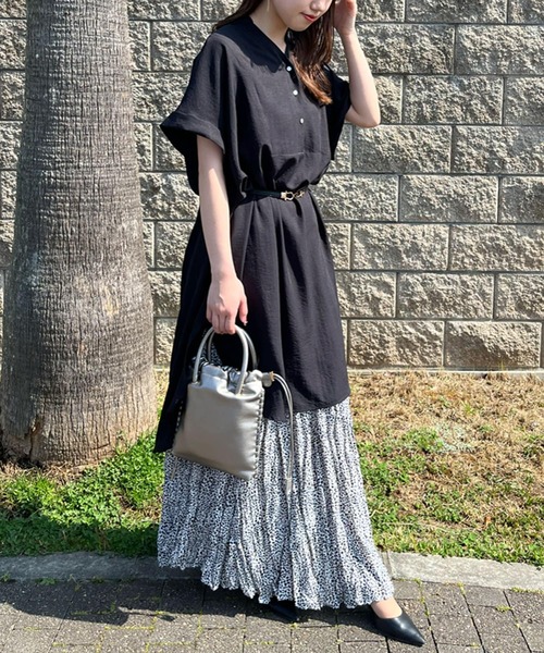 【2022SS】胸元のブザム切替がアクセントに!【POINT】・オリジナル生地シルキージョーゼットで仕立たワンピース。・胸回りの生地を切り替えたブザムデザインがポイントです。・シルバーボタンやサイドスリットなどのこだわりデザインが際立ちます。・身体のラインを拾わず楽な着心地を叶えてくれるゆるシルエット。・フレンチスリーブなので二の腕もカバーできます。※動画着用モデル身長152㎝【STYLING】・ワンピースとして着るのはもちろん、チュニック感覚でパンツと合わせるのがおすすめです。清涼感のある生地とすっきりとした首元が爽やかな印象を与えてくれます。デニムと合わせてカジュアルに着こなしたり、キレイめなパンツと合わせればオフィスコーデにも活躍します。【アフターケア】・手洗い可・あて布を使用してアイロン(低温)可・ドライ、ウェットクリーニング可【キーワード】#着回し力#着心地らくちん#ママにおすすめ#着痩せ効果#二の腕カバー#下半身カバー----------------------------------------------透け感:ややあり裏地:なし伸縮性:なし光沢感:なし----------------------------------------------※商品画像は着用イメージです。 光や角度により、実物と色味が異なる場合がございます。 また表示のサイズ感も実物とは若干異なる場合もございますので、 ご了承ください。※着用、お取り扱いの際は、商品についている品質表示と アテンションタグを必ずご確認ください。----------------------------------------------【Thevon】von…アイスランド語で「希望」という意味。The+vonの造語。何気ない毎日を女性らしく、カッコよく過ごす大人の女性へ、洗練されたアイテムを提案するブランドです。ファッションを楽しみ、程よく肩の力を抜いたアイテムを展開します。----------------------------------------------気になるアイテムは【お気に入り登録】がおすすめ!▽商品のお気に入り登録完売カラーの再入荷やラスト1点の通知などを受け取ることができます。新商品やクーポン、セール情報をいち早く受け取ることができます。【キーワード】#着回し力 #着心地らくちん #着痩せ効果 #二の腕カバー #下半身カバー