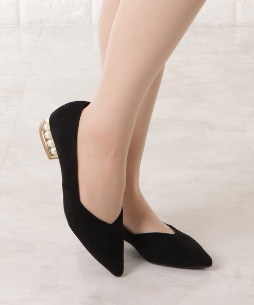 足元に女性らしさを添えてくれる、定番のポインテッドトゥパンプス。 無地をベースにしたプレーンなデザインで、カジュアルからきれいめまで幅広いスタイルにお使いいただける一足となっています。 生地を重ねたようなアッパーと甲部分をフェミニンに見せれくれるV字形のはき口がポイント。 ヒール部分には大粒のパールをあしらい、さりげなく華やかさを添えました。 普段使いにはもちろん、パーティーやオケージョンなどのドレスアップシーンにも◎ ローヒールなので疲れにくく、長時間の着用でも楽ちんなパンプスです。 ■カラー アイボリー、ピンク(スムースレザー調) ブラック(スエード調) ■サイズ(日本サイズ) 【35】22.5cm 【36】23.0cm 【37】23.5cm 【38】24.0cm 【39】24.5cm <注意点> ・色合いはモニター環境により若干の誤差が出ます。 ・サイズは測り方により若干の誤差が出る場合がございます。予めご了承ください。 ・入荷・生産時期により、色、サイズ、素材など多少異なる場合がございます。予めご了承ください。 ・本製品は生産過程におきまして、生地を織る際の糸の継ぎ目や多少のほつれが生じることがあります。 ・簡易包装となっており、保管・梱包時にシワ・偏りが伴う場合がございます。 ・靴箱は、海外からの入荷及びお届け迄の配送の過程で汚れや破損のあるものがございますが、 予めご了承ください。