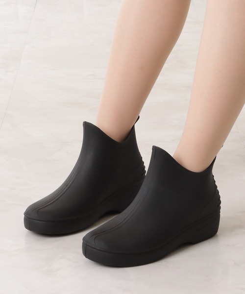 まるでスニーカーのようなフォルムで、カジュアルに履くことのできるレインブーツ。 雨の日やガーデニングなど、様々なシーンで活躍します。 どんな装いにも合わせやすいショート丈が使いやすく、合わせるアイテムを選ばないシンプルさも◎ ミドルカットでしっかりとフィット感もあり、着用時の脱げやズレが気になりにくいにもポイント。 さりげないアクセントになっているプルストラップは、着脱時にも重宝します。 レインブーツですが子供っぽくなりすぎず、雨が止んでもコーディネートに馴染むオシャレな一足となっています。 ■カラー アイボリー、ブラック ■サイズ(日本サイズ) 【35】22.5cm 【36】23.0cm 【37】23.5cm 【38】24.0cm 【39】24.5cm 【40】25.0cm <注意点> ・色合いはモニター環境により若干の誤差が出ます。 ・サイズは測り方により若干の誤差が出る場合がございます。予めご了承ください。 ・入荷・生産時期により、色、サイズ、素材など多少異なる場合がございます。予めご了承ください。 ・本製品は生産過程におきまして、生地を織る際の糸の継ぎ目や多少のほつれが生じることがあります。 ・簡易包装となっており、保管・梱包時にシワ・偏りが伴う場合がございます。 ・靴箱は、海外からの入荷及びお届け迄の配送の過程で汚れや破損のあるものがございますが、 予めご了承ください。