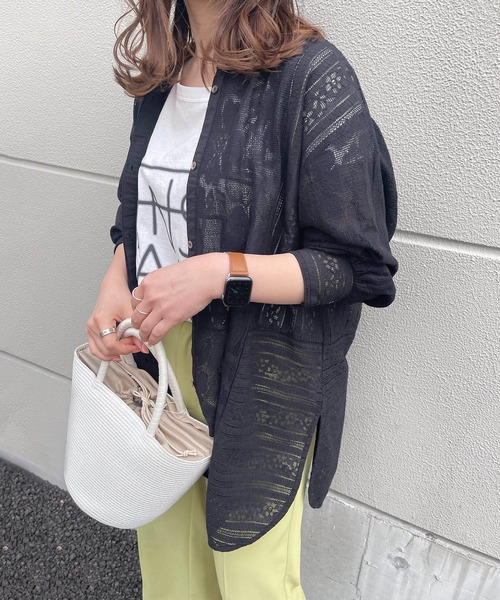 異なるレースが合わさった他にないデザインシャツ 商品ポイント ・上品なレースで甘くなりすぎない ・比翼仕立てできちんと感のある印象に ・サイドのスリットが抜け感をプラス ・長めの着丈で腰回りもカバーしてくれる スタイリングポイント ・カラーパンツと合わせて春夏らしいスタイリングに ・羽織スタイルでラフに大人っぽく着ても◎ ********************** 透け感:あり 裏地:なし 伸縮性:なし 光沢感:なし ********************** ▼洗濯方法 手洗い可能 ※撮影場所やお使いのモニター環境により若干お色味が異なる場合がございます。 特にロケの撮影では明るく見える傾向にございます。 ※商品はサンプルで撮影をしております。若干の仕様が変更になる場合がございますので予めご了承の上ご注文くださいますようお願いいたします。 ▼商品のお気に入り登録 完売カラーの再入荷通知や、ラスト1点の通知、セールの通知も受け取ることができます。 ▼ブランドのお気に入り登録 新商品や再入荷など、いち早くブランドのお得な情報を受け取ることができます。