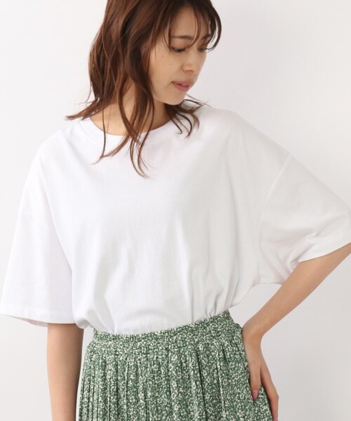 \\人気アイテム//■ポイント・大人カジュアルの必須アイテム!・ニュアンスのある、こなれTシャツ・遮熱、触れた瞬間ひんやりする接触冷感、UVカット機能付き・ゆるズルコーデにおすすめ■デザインこなれ感をニュアンスにしたクルーネックのオーバーサイズTシャツ。程よい開きが絶妙なラウンドネック。お袖はドロップショルダーでゆったりと着ていただけます。裾は前後差のあるラウンドヘム、ヒップを隠してくれる「後ろロング丈」がポイントです。■スタイリングドロップショルダーで肩のラインが落ちているので、女性らしさのある1枚です。ゆるっとしたシルエットが抜け感を演出してくれるので、1枚でおしゃれ見えします。スカートコーデにパールのネックレスを合わせれば、一気にこなれ感が出せますよ!■スタッフ着用コメント・スタッフA 身長:168センチ、体型:普通 着用サイズ:Mお尻が少し出るくらいの着丈でした。袖は肘上位の丈感です。・スタッフB 身長:158センチ、体型:ふっくら 着用サイズ:M鳩胸なのでTシャツを買うときは胸の身幅が気になるのですが、このTシャツはMサイズでも胸のシルエットがあまり気にならなかったです。・スタッフC 身長:160センチ、体型:やせ型 着用サイズ:Mゆったりシルエットなので、ボトムにインするとバランスよく着用できました。上からシャツを羽織ってももたつかなかったです。■生地、素材感生地感:AIR SHIELDという素材。肌触りの良いコットンを使用透け感:※オフホワイト(003) ライトベージュ(051) ラズベリーピンク(073) ブラック(319)はややあり伸縮性:あり厚さ:普通裏地:なしその他:遮熱、接触冷感、UVカット機能付き※AIR SHIELD...「空気をまとう」のコンセプトのもの誕生した、セラミックスと翡翠の粒子を練り込んだ異形断面糸を複数束ねた素材。遮熱、接触冷感、UVカット機能を兼ね備えた素材ですモデル情報:身長168cm B78 W58 H84 着用サイズ:02(M)店舗へのお問い合わせ商品番号:741-14328●製品寸法:02(M):着丈65cm B118cm 袖丈19cm 肩幅58cm03(L):着丈67cm B121cm 袖丈19cm 肩幅59cm04(LL):着丈69cm B124cm 袖丈20cm 肩幅60cm備考:
