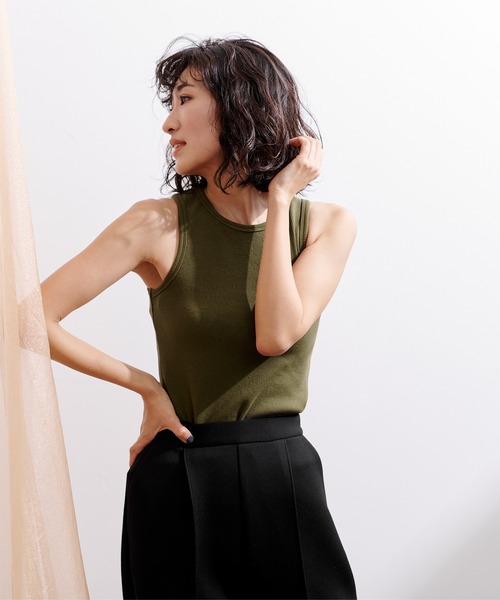 ◆POINT ・肩の内側に入るスリーブデザインが特徴的なアメリカンスリーブタンクトップ。 ・インナー使いは勿論、暑い季節には一枚でも着用できる使い勝手の良さも魅力。 ・すっきりとしたシルエットでヘルシーな肌見せが叶う一枚です。 ※当商品は機械による生産の過程上、どうしても"生地を織る際の糸の継ぎ目"や多少の"ほつれ"、他繊維の"混紡"、また、形やサイズや柄に多少の"誤差"が生じる場合がございます。 ※サイズは、実寸サイズを測っているため多少誤差がでる場合があります。製造工程の関係上、各採寸箇所実寸(平置き)より【約-3cm~+3cm】程度は誤差の許容範囲とさせて頂いておりますので、予めご了承くださいませ。 ※メーカーより密封状態で入庫し、検品時に再度袋詰めを行っておりますが、素材により染料等の臭いが強い場合がございます。 ※発送上の状態によって商品がシワになる場合がございます。 ※商品により色落ち・色移りがある場合がございますので、品質表示をご確認の上、お取り扱いにご注意くださいませ。 【生地】しっかりとしたリブニット生地 【伸縮性】あり 【透け感】淡色に多少あり 【裏地】なし