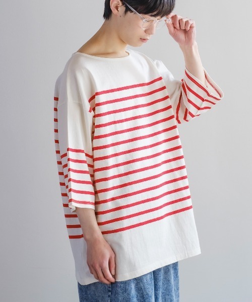 今季人気が再熱中のマリンテイストバスクシャツをご紹介。 ●ボディはコットン100%、先染めボーダー柄 ●ドロップショルダー、大きめの身幅、アームホールを採用 ●シンプルで使いやすい細ピッチのボーダー柄 ●首元はゆったりとしたボートネック 今季大注目のマリンテイストなボーダーTシャツです。 ゆったりとしたサイズ感が今季らしくシェフパンツやチノパン、デニムパンツとどんなパンツとも相性の良い一枚。 男性はもちろん、女性にもオススメなアイテムです。