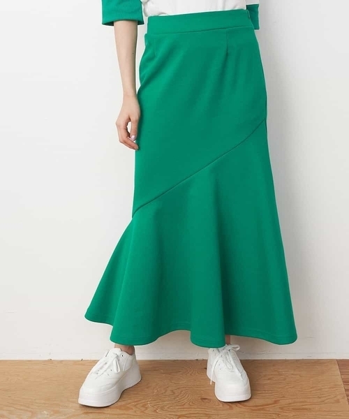 ◆トレンドのマーメイドスカート◆ ■デザイン スウェットとセットアップ対応可能。 ウエスト後ろはゴム仕様で、着脱もストレスフリー。 左脇にコンシールジップ付き。 斜めの切替が特徴的なデザインスカート。 裾フレアで、トレンドのマーメイドシルエットが綺麗な一着です。 広がる裾が、スタイルをより良く見せてくれます◎ トレンドカラーのグリーンから、 ベーシックカラーの白、黒と展開も豊富◎ ■スタイリング セットアップ対応商品の為、(A1KGP34054)と 合わせていただくのがおすすめです。 単品使いの場合は、Tシャツなどのカジュアルなカットソーと 合わせていただくのがおすすめです。 ■着用感 ウエスト後ろがゴム仕様なので、着脱しやすいです◎ 切替線が施され、スタイルアップしてくれます。 コットンミックスで、肌触りが柔らかい◎ これからの季節にぴったりです。