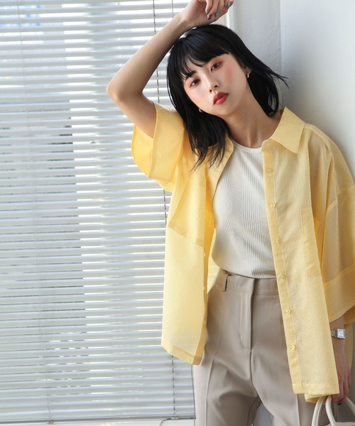 細めのストライプ柄がスラっと華奢見えを叶えてくれる半袖ストライプシアーシャツが登場!ボタンを留めて着るのはもちろん、さらっと羽織るだけでもサマになる一枚。さらりと着られる質感・軽さもポイント。シンプルなデザインの中に落とし込まれた両胸のポケットデザインがアクセントに◎ふんわりとした透け感や華やかなカラーが春夏の装いにピッタリ!ゆったりとしたサイズ感でトレンドのルーズな着こなしを楽しめます。Model 165cm サイズFREE着用ゆったりと着られるサイジングです。程よく透け感があり夏にピッタリのアイテムです。Model 162cm サイズFREE着用ゆったり大きめでラクに着られるサイズ感でした。【お買い物をお楽しみいただく為に】▼商品のお気に入り登録完売カラーの再入荷通知や、ラスト1点の通知、セールの通知も受け取ることができます。▼ブランドのお気に入り登録新商品や再入荷等、いち早くブランドのお得な情報を受け取ることができます。