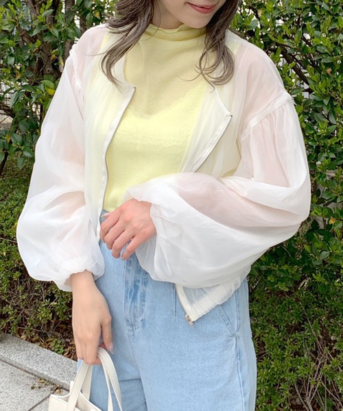 トレンドの透け感が楽しめるヘルシーなブルゾンが登場 ■デザイン ・春から初夏にかけて大活躍のシアー素材のアウター。 ・程よい透け感で羽織るだけでトレンド感UP。 ・袖のボリューム感とゆとりあるシルエットでどんな方も着やすいデザインです。 ・ノーカラーで合わせやすくオンオフ問わず着ていただけるアイテムです。 ・日よけ対策や冷房除けにもオススメです。 ■カラー ・オフホワイト/グレージュの2色展開 ■スタイリング ・ブラトップにさらっと羽織っていただくだけでトレンド感あるスタイリングに。 ・ロゴTやスニーカーに合わせて大人カジュアルなスタイリングも◎ ・フェミニンなワンピースやロングスカートとも相性良く着ていただけます。 ■point ブルゾン、アウター、春アウター、透け感、ヘルシー、シアー、ボリューム袖、ボリュームスリーブ、ノーカラー、春服、春コーデ、夏服、夏コーデ、羽織り、大学生コーデ、オフィスカジュアル、通勤通学、韓国コーデ、着回し、着まわし ----------------------------- 裏地:なし 光沢感:なし 透け感:あり 伸縮性:なし ----------------------------- model:166cm ※着用、お取り扱いの際は、商品についている品質表示とアテンションタグを必ずご確認下さい。 ※ご覧のモニター環境や撮影環境により実際の商品と多少色味が異なって見える場合がございます。 ご理解の程よろしくお願いいたします。 ■お気に入り登録のおすすめ 【気になるアイテムを登録】 ハートをクリックしてお気に入りに登録すると 完売カラーの再入荷やラスト1点の通知、セールの通知を受けとることができます。 【ブランドを登録】 新商品や再入荷、セール通知など、いち早くブランドの情報を受けとることができます。