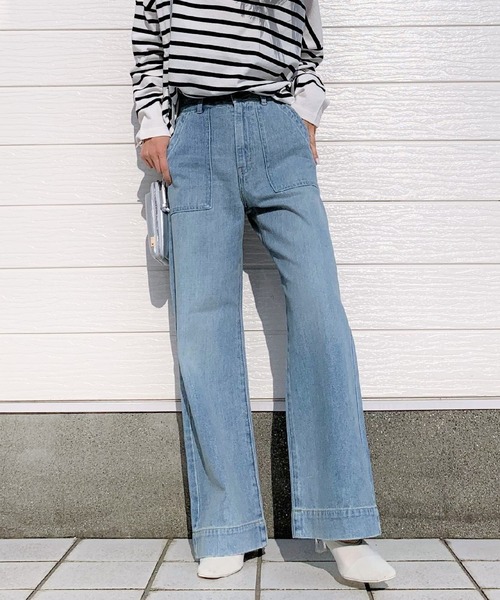 Qの定番のワイドストレートデニムのブリーチver.です。 昨年までよりも若干すっきり目のサイズ感にしています。 ハードなブリーチ&ダメージ加工を施すことで、雰囲気のある1本に仕上げました。 ポケット口や裾などのダメージ感、太ももやひざ裏などにはヒゲと呼ばれる横筋を入れ、こだわりのある加工を施しました。 形はストレートのきれいなシルエット、そしてハイウエストでカジュアルな中にも女性らしさのあるパンツに仕上げました。 ウエストやヒップ周りをすっきりと見せる優秀デニム。 ハイウエストで履けるから脚長効果も期待出来ます。 カジュアルにもキレイ目にも履けるオトナデニムです。 背の高い方も、小柄な方もそれぞれの着こなしでお楽しみいただけます♪ 《インフォメーション》 ◆商品のお気に入り登録 完売していても再入荷時に再入荷通知を受け取ることができますので、是非ご登録ください。 ◆ブランドのお気に入り登録 新商品や再入荷などの情報を受け取ることができますので、是非ご登録ください。