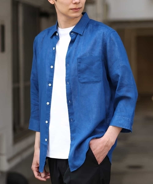 ◆「ハイクオリティーリネン」シリーズ5つの多機能【イージーケア/洗濯機で洗える/接触冷感/速乾/ストレッチ】素材を使用したこだわりの詰まった七分袖シャツ。◆きれいめ・カジュアル・テレワークと様々なシーンに対応するハイブリッドなリネンシャツ。接触冷感や速乾機能つきで夏の暑い毎日を快適に過ごすことのできるアイテム。一枚着としてはもちろん、羽織としても重宝する一枚は持っておくべき夏服アイテム。きれいめに見える素材とこだわりのシルエットで、幅広く着用いただけます。※ライトイエロー 44・SサイズはWEB限定販売です。※お使いの液晶環境により、色味が多少異なる場合がございます。予めご了承ください。