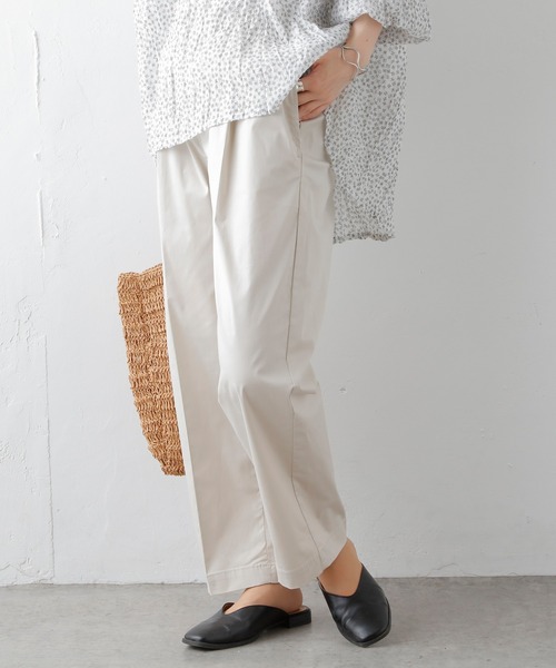 ピュアルセシン 2022 spring collection【Loose and classical】 ◇ピュアルセシン人気のJAPAN MADEパンツ◇ ●商品のお気に入り登録 クーポンやタイムセール、再入荷通知やラスト1点などお得な情報を受け取ることができます。 ご登録をお忘れなく◎ ●デザイン フロントタックとセンタープレスが美脚効果を高めてくれるワイドパンツ。 ウエストは総ゴムになっており、紐も調節も可能。 高い伸縮性を持つ軽やかな素材を使用し、ノンストレスな穿き心地を叶えます。 ワイドなシルエットが今っぽく、またベーシックなデザインの為コーディネートの幅も広がる万能アイテムです。 ●カラー展開 季節問わず使いやすいライトベージュ/ライトグレー/オリーブ/ブラックの4色展開。 ●素材 コットンがメインの素材で、ポリウレタン混でストレッチが効いています。 柔らかい肌あたりです。 ●スタイリング カジュアルにロゴTシャツやカットソーはもちろん あえてきれいめなブラウスを合わせてレディライクな着こなしもオススメです。 =============================== 透け感:なし 裏地:なし 伸縮性:あり 光沢感:なし 生地の厚さ:やや薄手 【スタッフコメント】 年齢:20代半ば/身長:154cm/普段着用サイズ:Mサイズ サイズ感:くるぶし程の丈感なのでスニーカーで穿けました。 素材感:軽やかでストレッチ性があり動きやいです。 =============================== ※撮影場所やお使いのモニター環境により若干お色味が異なる場合がございます。特にロケの撮影では明るく見える傾向にございます。 ※予約商品はサンプルで撮影をしております。若干の仕様が変更になる場合がございますので予めご了承の上ご注文くださいますようお願いいたします 。