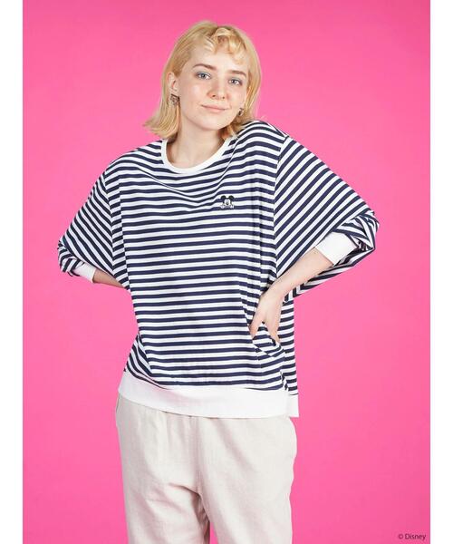 ボーダーカラーが異なる、マリンルックにぴったりなドルマンカットプルオーバー。 ボーダーの壁から覗いたような「ミッキー」の刺繍がワンポイント。 カジュアルながらも広めのクルーネックと7分袖で女性らしいシルエットでパンツにもスカートにも合わせやすいアイテムです。 Disney collection by AMERICAN HOLIC (ディズニー コレクション バイ アメリカンホリック) いつもの暮らしに、Disney がある。 日常にわくわくが生まれて、非日常になる。 毎日がポジティブに向いて、積極的になれる。 新しい場所に行ける、ドキドキすることが起きる。 新しい人とも、出会える予感。 日々をすこしだけ、カラフルに彩ってくれる。 そんな存在になれるように。