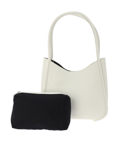 インバッグとしても使えるポーチがセットになったハンドバッグ。シボ感のある合成皮革で上質感のあるデザインに。マグネットホックで開閉もしやすく、内ポケットを備えていたりと、機能性も申し分なし。ポーチは単品でも使えるので、様々な用途にも活躍してくれます。普段使いはもちろん、デートやオフィスにと、シーンを問わずに愛用できるアイテムです。