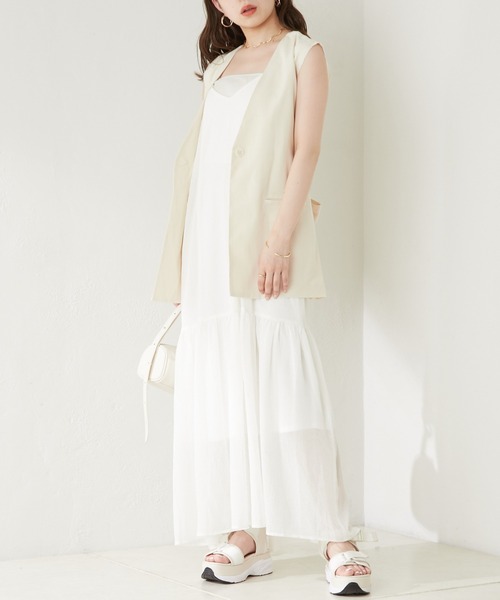 着回し力も抜群な前後2WAYが嬉しいワンピースが登場! ▶商品ポイント ・前後2WAYで着用でき、Vネックと胸開きデザインで雰囲気を変えてお使いいただけます。 ・肩紐はアジャスター付きでサイズ調整可能です。 低身長の方から高身長の方まで幅広くお召しいただけます。 ・裏地が膝下のティアード切替部分までついており、透け感も気になりません。 ・表面がぽこぽこした素材になっており、春夏らしく涼しげな印象です。 ▶スタイリングポイント ・1枚でさらっと着こなしてヘルシーに肌見せするのが今季の気分。 インナーはチューブトップを選ぶとワンピースのデザインが魅き立ちます◎ ・胸開きデザインで着る際は、シアーやレース素材のカットソーやシャツなどを合わせると露出しすぎず着こなせます。 ・小物をきれいめなサンダルやヒールで合わせると甘めに、 スポーツサンダルやキャップなどと合わせるとカジュアルダウンしてお召しいただけます。 ▶Q&A Q.丈感が知りたい! A.着用スタッフ:身長156cm、 厚底やヒールを履くとちょうど良い丈感です。 低身長の方はぺたんこ靴だと裾擦りしそうですが、肩紐がアジャスター付きなので長さを調節するとヒールなどを合わせてお召しいただけます。 Q.サイズ感が知りたい! A.着用スタッフ:骨格ストレート ゆったりしたシルエットでリラクシーに着られます。 お腹や腰まわりもゆったりしているので体型を拾いづらいのが嬉しい! 妊婦さんでもご着用いただけそうです。 Q.インナーはなにを合わせるといい? A.パット付きインナーを合わせていただくのがおすすめです! 肌見せが気になる方はカットソーやシャツ、ブラウスをレイヤードすると露出が気になりません。 また、裏地があるので透け感は気になりませんが、ペチコートやナチュラルカラーのインナーを合わせていただくとより安心してお召しいただけます。 ------------------------------------------------------ 裏地:あり 伸縮性:あり 光沢感:なし 生地の厚さ:ふつう ------------------------------------------------------ おすすめインナーはこちら▼ マルチウェイストラップチューブトップ CHZ1021406A0002 【SALON by Chico限定】総レースチューブトップス CHZ1021317A0001 ▼お気に入り登録のおすすめ 【気になるアイテムを登録】 ハートをクリックしてお気に入りに登録すると 完売カラーの再入荷やラスト1点の通知、セールの通知を受けとることができます。 【ブランドを登録】 新商品や再入荷、セール通知など、いち早くブランドの情報を受けとることができます。 是非ご利用頂き、お買い物をお楽しみ下さい。 ▼商品について ・サイト上のカラー名と、お届け商品に記載されているカラー名が異なる場合がございます。 ・商品の色味は、撮影場所や光のあたり具合などにより色味が違って見える場合がございます 。 また、お客様のお使いのPCのモニター環境などにより色味が違って見える場合がございます。 予めご了承の上ご注文下さい。 ▼返品・キャンセルについて ・着用、洗濯後の返品、交換は致かねます。 ・商品到着後、着用前に商品を確認して頂きますようお願い致します。 ※画像の商品はサンプルです。実際の商品と仕様、加工、サイズ、素材が若干異なる場合がございます。 ▼新型コロナウィルス感染拡大による、製造元地域でのロックダウン(都市封鎖)の影響により、お届けに遅れが生じる場合がございます。 ▼ロックダウンの影響により、お客様へのご連絡が直前になってしまう場合もございますので、予めご了承ください。