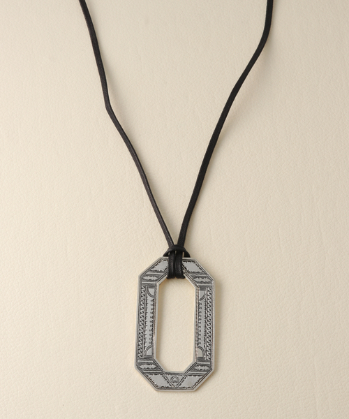 北アフリカの先住民族の言語で「Botam Sansalt/ボタム スンスルト」のネックレスです。 八角形のシルエットが印象的なデザインになり、全体に彫られた細かい文様が美しく存在感のあるネックレスになります。 目を引くデザインのため、シンプルなスタイルをはじめ様々なコーディネートのアクセントとしてご使用頂けます。紐にはあわじ玉を2つ付け、そのあわじ玉を移動させることで紐の長さを調節することができます。【Adawat’n Tuareg / アダワット トゥアレグ】北アフリカはサハラ砂漠に住む遊牧民"トゥアレグ族"。インディゴ染めの青いターバン姿が「青衣の民」と呼ばれる砂漠の遊牧民。その彼らが作り出す代々受け継いできた銀製品が、伝統工芸の一つとなっております。 表面の文様は1刀1刀が手彫りで丁寧に彫られ、その文様にはそれぞれ意味があり、事物、物語、寓意などを象徴しており、古代の神話や民話の影響が色濃く残っています。その独創性のあるデザインが、男女問わず注目を浴びているシルバーコレクションです。【ご注意】※商品の色味につきまして、お客様のお使いのPCのモニター環境により実際のカラーと画像の色味が違って見える場合が御座います。予めご了承の上、ご注文下さい。※店頭・外での撮影画像は光の加減で、実際の商品より明るく見える場合が御座います。商品の色味はスタジオ撮影の画像を参考にして下さい。メーカー品番:T192N002SV
