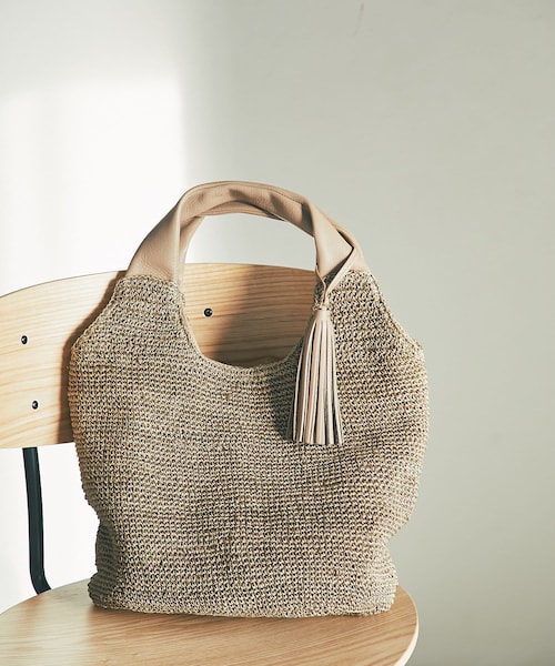 春夏に最適なラフィア素材が涼し気な印象のショルダーバッグ ●デザイン涼しげな天然素材と上質なレザーを使用したハンドルとタッセルが絶妙にコラボしたバッグ。大きめのタッセルが良いアクセントになります。アバカは強度が強い麻の一種で、ハンドルは柔らかいレザーですので肩や腕に掛けても痛くないです。大きなタッセルやレザーワッペンなど、ラグジュアリーなディティールがあしらわれ、きれいめにもカジュアルにも合わせることができます。しっかりと収納力を備え、内側にポケットもございます。●サイズ高さ:38cm幅:34cmマチ:15cm●素材アバカ×牛革【VIOLAd'ORO (ヴィオラドーロ)】持つごとに愛着が湧き大切に扱われる、そして自分のスタイルを完成させるのに欠かす事ができないそんな存在であって欲しいという願いが込められています。可愛らしさを残しつつも、凛とした強さ、自分のスタイルを持っている女性を想い描きながら VIOLAd'OROらしさを日々追求しています。上質な素材でトラディショナルな中にも旬のエッセンスを織り交ぜたデザイン、また高いクォリティーを維持することにこだわっています。--------------------------------------------------------------------------------【注意点】※画像の商品は光の照射や角度、お使いのモニター環境により、 実物と色味が異なる場合がございます。あらかじめご了承下さいませ。--------------------------------------------------------------------------------【『♡』をクリックでお気に入り登録】・ラスト1点や再入荷の通知が届きます。--------------------------------------------------------------------------------