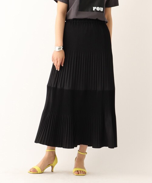 ライトタフタのマジョリカプリーツ切り替えスカート【デザイン】マジョリカプリーツ加工で、裾に向けてフレアに仕上げ、切り替えを入れデザイン性のあるフレアスカートに仕上げています。ウエストはぐるりゴム仕様にし、楽な履き心地に。トップスはインでもアウトでもきれいに履け、カジュアルからきれいめな着こなしにも合わせられるデザインスカートです。※ポケットなし※ウエストゴム仕様【素材】ポリエステル100%のライトタフタを使用し、ドライタッチなハリ感ときれいな表面感が特徴の素材。これからの季節におすすめの素材感です。マシンウォッシャブル、イージーケア機能付きでお手入れも簡単なのも嬉しいポイントです。※ひざ丈の裏地あり※キャメル(041)はやや透け感があるため、インナーの着用をおすすめします。---------------【C(シー) OPAQUE.CLIP】「PLAYFUL FEMININE」をキーワードに、天然素材と美しくポジティブなカラー、ワクワクするようなディティールや、ミックス感のあるスタイルなどファッションの楽しさを詰め込んだ新レーベルです。こちらの商品は主に夏に着用いただける商品です。モデル情報:身長163cm B80 W60 H89 着用サイズ:38(M)店舗へのお問い合わせ商品番号:637-74036●製品寸法:36(S):W60~72cm H88cm 総丈87cm38(M):W62~74cm H91cm 総丈90cm40(L):W64~76cm H94cm 総丈92cm備考: