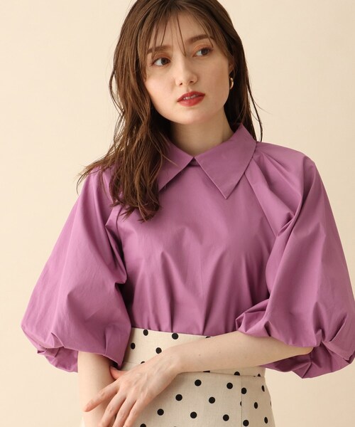 ------------------------------------------------- ▼ お気に入り登録 500人突破!-------------------------------------------------ハリ感のあるコットン(綿)素材を使った、5分袖デザインブラウス。【素材】程よいハリ感とさらっとしたきれいな表面感が特徴的なコットン(綿)素材を使用しています。袖部分のみ裏地があり、袖のボリューム感を出しています。※こちらの商品はやや透け感があるため、インナーの着用をおすすめします。【シルエット】小さめの衿にラグランスリーブのボリューム感のある袖が特徴的なシルエット。ふんわりとしたシルエットでおつくりしており、インでもアウトでもきまるデザインに◎広めにとったラグランスリーブでかしこまらず、こなれた華やかな雰囲気に仕上げてくれます。【こだわり】コットン(綿)素材なので、さらっとしてきれいな表面感とハリ感がポイント。かしこまりがちな衿ブラウスを、今年らしく少しカジュアルにも着られるデザインに仕上げました。マシンウォッシャブル機能つき。【スタッフコメント】RINA(158 /骨格ウェーブ/ブルべ)ボリューム袖がコーディネートのポイントになって可愛い♪暑い時期でもサラッと着られるハリ感ある素材で、襟付きなのでお仕事などにも着られます!こちらの商品は主に夏に着用いただける商品です。モデル情報:身長163cm B81 W56 H82 着用サイズ:38(M)店舗へのお問い合わせ商品番号:N02-84010●製品寸法:38(M):着丈50cm B92cm 裄丈51cm備考: