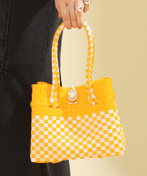 春夏のコーデに映える チェスのボードのようなブロックチェック模様のバッグ。コンパクトなサイズながらもマチが広いのでたっぷりと収納ができます。 使いやすいブラックと、季節感を感じられるイエローの2色展開。プラスチック素材なので軽く、持ちやすいのも嬉しいポイントです。 BALI WERKSTATTE / バリ ワークスタット バリの伝統的なハンドクラフトの技術にモダンな要素を融合し、洗練されたデザインが特徴のライフスタイルブランド。ブランド名はファウンダーの故郷ウィーンにある“WIENER WERKSTATTE”という現地のクリエーターコミュニティが由来。素材、製法のスペシャリストのそれぞれのアトリエで作られる個々のアイテムが集結して、1つのコレクションを創造しています。 【お買い物をよりお楽しみいただく為に】 ▼商品のお気に入り登録(ハートマークをクリック) 再入荷、残り1点、お得なセールなどの通知を受け取ることができます。 ▼ブランドのお気に入り登録 新商品や再入荷、クーポン配布などいち早くブランドのお得な情報を受け取ることができます。