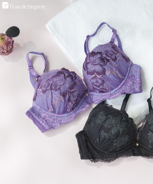 シックな華ありランジェリー -- シックな華ありランジェリー -- 同系色のレースや刺繍糸で一見、シンプルですが、大輪のフラワーモチーフやさり気なく煌く刺繍糸など、落ち着いたデザインに華やかな要素を詰め込みました。 -- 軽さが嬉しいナチュラルバストメイク -- 軽い素材を使用した極軽ブラは程よい補正力で自然体なバストメイクが魅力。 -- ワイヤの有無 -- 有り ------ ◆サイズ展開 : B65 B70 B75 C65 C70 C75 D65 D70 D75 E65 E70 E75 F65 F70 F75 G65 G70 G75 ◆素材構成 : ポリエステルナイロンその他 ◆商品特徴 : 大きいサイズ Gカップ 軽い ナチュラル 華やか ≪企画:日本 - 生産:中国≫ ------ ◆フックアイ: 2段3列 [B-Fカップ] 3段3列 [Gカップ] ◆ストラップ幅: 10mm [B-D ※D75~は除く] 12mm [D75~&E-Gカップ] ---------------------------------------------------------------------------- <価格改定のお知らせ> 2024/10/15より価格見直しにより、販売価格改定をさせて頂きます。 ご了承下さいますよう、お願い申し上げます。 ※ご購入時期により価格改定前タグの商品をお届けする場合がございます。予めご了承下さい。 ----------------------------------------------------------------------------