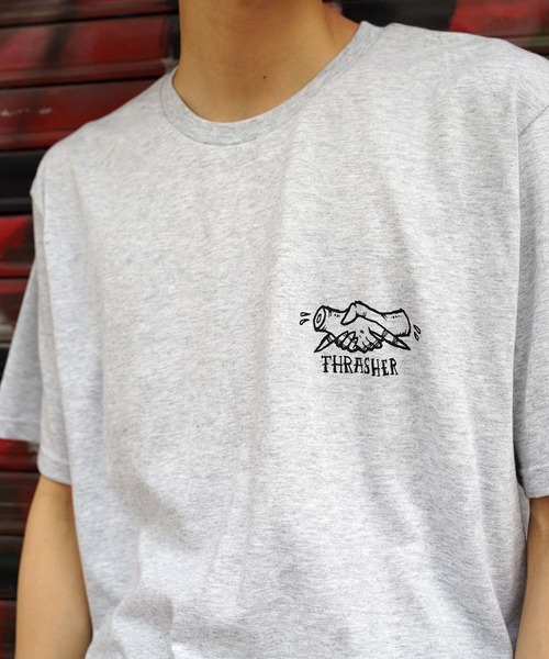 胸元のワンポイントが特徴の半袖Tシャツ。ボトムスと合わせるならハーフパンツやバルーンパンツ、ワイドパンツ、ハイウエストのデニムやジョガーパンツ、ラインパンツ、スキニーやレギンスなども好相性。また、タックインをする事でコーディネートにメリハリが出ます。小物でアクセントをつけるなら今期人気のバケットハットやニットキャップなどの帽子やスカーフや、トレンドの巾着バッグやバックパックやボディバッグ、ビニールバッグ・クリアバッグ、マクラメトート、メッシュバッグは欠かせません。これからの季節鉄板のサコッシュやお財布ショルダーなんかも◎足元はスニーカーはもちろん、ビーチサンダルやスライドサンダルなどもオススメ。【THRASHER:スラッシャー】スラッシャー・マガジンから生まれたスケーターなら1度は憧れるハードかつ、クールなブランド。1981年にサンフランシスコでエドワーズ・リギンスが創刊して言わずと知れたUSAを代表するスケートボード専門誌「THRASHER MAGAZINE」。雑誌の刊行だけに留まらずそのブランドとしての地位は世界中の若者たちの間で確固たる物となっている。スケートボードだけの枠にとらわれずウェア、アートワーク、ロック、他のスライドスポーツ界に置いてもその独自の世界観はある種その手のサブカルチャーの代名詞にさえなっていると言っても過言では無い■商品をお気に入り登録する■お気に入り登録しておくと、完売商品の再入荷通知を受け取れます。さらに、ラスト1点・セール時にも通知が来ます。■ブランドをお気に入り登録する■新入荷・再入荷などのブランド情報をいち早く受け取れます。