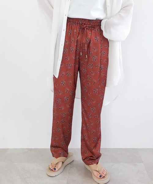 大人可愛い、夏のプリントパンツ《素材》微光沢と落ち感のある素材で、大人っぽい印象です。《デザイン》小さめの柄が大人可愛い印象のプリントパンツです。すっきりとしたテーパードシルエットなので、カジュアルになりすぎないのがポイント。ウエストがゴム仕様でリラックス感のある穿き心地です。シンプルなTシャツやブラウスを合わせるだけで、サマになるので、夏のコーデの主役にぴったりなアイテムです。---------------------------------------------------【気になる商品はお気に入り登録がおすすめ!】・在庫残りわずか・再入荷・セールの情報などの通知を受け取ることができます。ぜひ♡をクリックして、気になる商品を「お気に入り登録」してくださいね!【ショップ・ブランドのお気に入り登録も!】新商品や再入荷、セール、クーポンの配布など、いち早くお得な情報を受け取ることができます。---------------------------------------------------