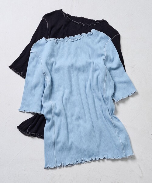 2022 Spring&Summer item メローロックの配色ステッチがかわいい5分袖Tシャツ ●トレンドライクなメロディティールがポイントリブトップス ●薄手でやわらかな素材感は抜群の着心地です ●ボートネックデザインなので、ネックラインが綺麗に見え、女性らしさを演出します ●サイドに配色ステッチが入っているのでさりげなく華奢見えするのが嬉しい ●コンパクトなので、タックインもしやすいデザイン ●色違いで揃えたくなる万能アイテム◎ おすすめコーディネート 1枚でも決まるシアーメローリブTシャツ。 タイトなシルエットなので、ハイウエストパンツやサロペット、フレアスカートなどボリュームのあるボトムと相性抜群。 ジャケットや薄手の羽織の中でももたつかないので、インナー使いもしやすいです。 ベーシックカラーはワントーンコーディネートや柄もの・色ものとの相性も良く着回し抜群。 今年らしく明るいカラーアイテムは一枚でもアクセントになり、シンプルなコーディネートでも華やかに見せてくれます。カラーブロッキングで簡単に上級者コーディネートも完成。 ------------------------------------------------------------------------------------- お気に入り登録のオススメ ▼商品のお気に入り登録▼ 再入荷、残り1点、セールなどの通知を受け取ることができます。 ▼ブランドのお気に入り登録▼ 新商品や再入荷、ショップのおすすめトピックスなど、いち早くブランドの情報を受け取ることができます。 ------------------------------------------------------------------------------------- ※こちらの商品は、弊社管理上のカラーを表記しております為、タグのカラー表記と異なる記載となっております。 【サイト表記:タグ表記】 ・オフホワイト:OFF ・ブラック:BLACK ・オレンジ:ORANGE ・ブルーグリーン:GREEN ・サックスブルーBLUE ※掲載画像の商品の色味は、屋外や屋内の光の照射や角度により実物と色味が異なる場合がございます。また表示のサイズ感と実物は若干異なる場合もございますので、予めご了承ください。 ※着用、お取り扱いの際は、商品についている品質表示とアテンションタグを必ずご確認下さい。 【FREAK'S STORE/フリークスストア】 私たちの心の故郷であるアメリカを中心に世界中から時々のテーマに基づく旬をセレクト。 常に新鮮で、どこか懐かしく、さりげなく、こだわりを持って、モノだけではなくコト、その楽しみ方をフリークススタイルとして提案します。