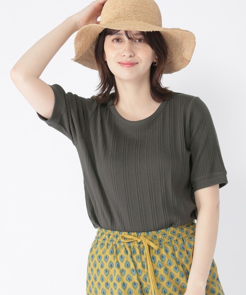 夏に嬉しいUV機能付き! ーーー マルチボーダーになったリブ生地を使用した5分袖のプルオーバー。 身体のラインを拾いにくく程よいサイズ感の仕様に。 襟と袖口が配色になっており、リブの縦ラインが細見え効果にも◎。 これからの時期に嬉しいUV機能付き。 ーーー レジャーフィッシャーサロペット(2273867)のインナー、 レジャーガチャベルト付きスカート(2275408)にタックインするスタイルもおすすめです。