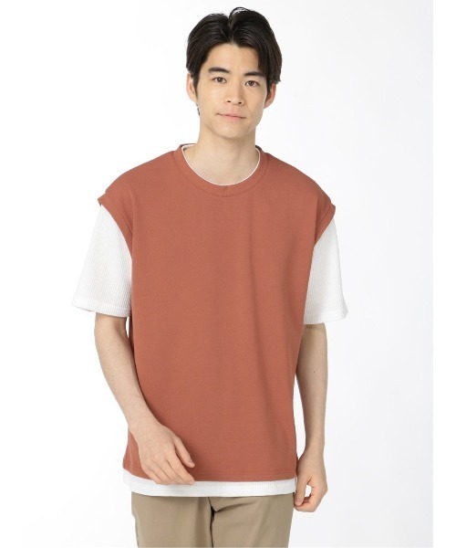 ■素材特徴 さらっとした着心地のストレッチポンチを使用しています。アムンゼン(梨地織り)で細かい凹凸感が特徴です。表面のシボが肌への張りつきを防ぎ、夏にぴったりな清涼感があります。袖・裾部分はポリエステル・コットンの天竺生地を使用しています。 ■デザイン ベストとTシャツを重ね着したように見える、クルーネックの半袖Tシャツです。袖・裾部分を別生地で切り替えたフェイクレイヤードで、重ね着風のお洒落コーディネートが一枚で簡単に完成します。キチンと感があるので、プライベート、ビジネスカジュアル、リモート・テレワーク等、オンオフ兼用で大活躍してくれます。 ■シルエット 幅広い年代の方に着ていただける、ややゆったりとしたシルエットです。身体のラインを拾わず、リラックスした雰囲気に仕上げています。 ■コーディネート 一枚で着るのはもちろん、ジャケットインにもぴったりです。綺麗目ボトムで合わせたモードスタイルから、ショートパンツで合わせたカジュアルスタイルまで幅広く活躍してくれます。 フィット感:ややゆったり シーズン:夏 展開カラー:黒(ブラック)・ベージュ・キャメル *アテンションタグ・洗濯ネームを御確認の上、着用又は取り扱い下さい。 *光の当たる場所や高温多湿になる場所での保管は避けて下さい。 *使用の有無に関わらず、経年劣化は進行いたしますのでご了承下さい。 *生地の裁断・縫製方法により、写真と同様の柄が出ない場合がございます。 *閲覧デバイス・環境により質感・色味に誤差が生じる場合がございます。 予めご了承くださいませ。 * ZOZOTOWN お買い物ガイド 商品のお気に入り登録 ♡をクリックしましょう!完売カラーの再入荷通知や、ラスト1点の通知、セールの通知をお知らせします。 ブランドのお気に入り登録 新商品や再入荷など、いち早くお得な情報を受け取ることができます。 最短で翌日お届け 商品をカートに入れた後、注文内容の確認ページで「即日配送」を選択していただければ、最短でご注文した翌日にお届け致します。 (ZOZOTOWNお買いものガイドをご参照ください)
