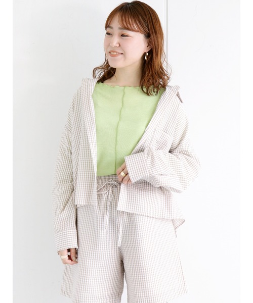 ナチュラルガーリーな雰囲気漂うギンガムチェック柄のシャツ。ポケットが着こなしにアクセントをプラス。さらっとした肌触りで快適な着心地に導いてくれるのも◎シンプルに着るのはもちろん、前ボタンを開けて羽織り代わりにと、様々なスタイリングのアレンジも楽しめる1着です。同デザインのショートパンツ(1710834)と合わせたセットアップもおすすめ。