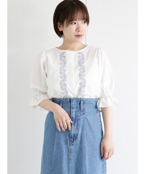 パリにある老舗手芸店『Maison SAJOU』とコラボした特別なアイテム。SAJOUのお花刺繍を施したガーリーなブラウス。ギャザーの効いたふんわりパフスリーブが可愛さをプラスしてくれます♪短め丈なので、カーディガンとして羽織りにも◎ コーデの主役になる、春のガーリーコーデにぴったりなおすすめのアイテムです。
