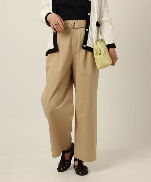 ◆デイリーからトレンドまで、幅広く着こなせるカジュアルパンツ◆ 今年らしくハイウエストに仕上げたワイドチノパンツ。 後ろウエストはゴム仕様なので穿き心地も◎ トップスをインしても決まるよう同素材のベルト付きなのも嬉しいポイント◎ トレンドの短丈トップスと着こなすスタイルや、デイリーにブラウスやTシャツとのコーディネートもおすすめです◎ ※34(XSサイズ)・42(XLサイズ)はWEB・一部限定店舗での販売です。 ※ウエストがやや小さめのお作りになっております。 詳しくは、サイズ詳細の寸法をご参照ください。 ※色により、着丈の長さが異なります。 詳しくはサイズ詳細の寸法と、モデルの着用画像をご参照下さい。