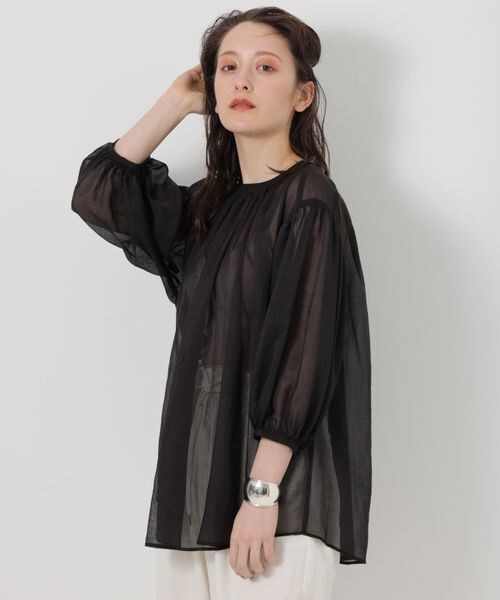 -2022 SPRING&SUMMER- ーーー 【4.19(tue)小林文さんインスタライブご紹介アイテム】 ◆DETAILポイント◆ 前後2WAYで着用可能なブラウスです。 袖口の内側にゴムを入れているのでたくし上げても落ちにくい袖になっています。 ーーー ◆FABRICポイント◆ 超細番手のポリエステル素材で編みたてたスラブ感が特徴的なシアー素材です。 【BABYLONE / バビロン】 "Be myself" 好きな色 好きなかたち 好きな着こなし 自分の好きは自分だけが知ってる 自分らしい自分を好きでいたい 時代のニュアンスを取り入れながらも まわりにとらわれない ブレないしなやかな女性たちへ