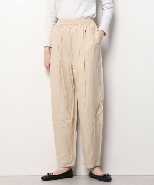 CHIGNON(シニヨン) クレセントイージーパンツオールゴム+腰周りのタックで丸みをつけたクレセントシルエットがお洒落なイージーパンツ。てろんとした落ち感のある素材感で僅かに光沢感もあるのでキレイめなアイテムとも相性◎。太めのストレートシルエットですが、僅かにテーパードがかかっていて綺麗なシルエットとなっています。【CHIGNON/シニヨン】女性の持つ力、輝き続ける内なる力。肩の力を抜いてファッションを楽しんでもらえるように、単純に心を動かされ、HAPPYを感じる洋服たちを提案いたします。