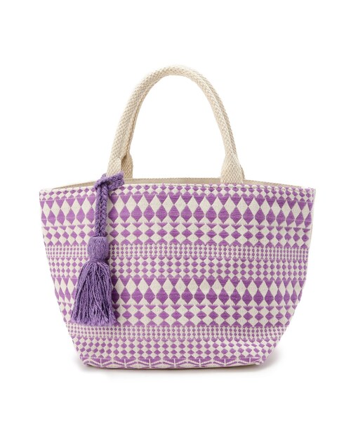 【デザイン】 しっかりとした素材感のインド綿(コットン)を使用した温かみのあるトートバッグ。 オリエンタルチックな鮮やかな柄に、タッセルのモチーフを配したお洒落なアイテム。 コンパクトなサイズ感ながら幅広なマチがあり収納力もGOOD。 ※ポケット数:内側×1 店舗へのお問い合わせ商品番号:C70-04307 ●製品寸法: 00:高さ21cm 幅(上部)35cm 幅(下部)20cm マチ17.5cm 持ち手上がり13cm 付属チャーム全長17cm 付属チャームモチーフH10cm 付属チャームモチーフW6cm 備考:重量:約260g