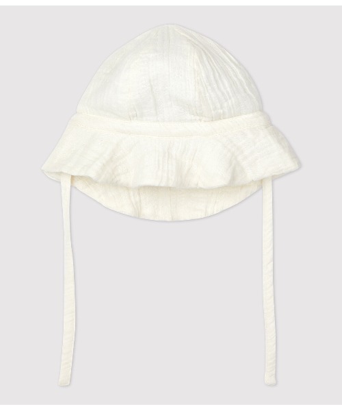 2枚の生地を編み上げた、ガーゼのようにやわらかなチュビック素材を使用したクロシェです。シンプルなコーディネイトのアクセントにピッタリのアイテムです。やわらかな着用感でベビーの頭部を優しく守ります。ミニマルなデザインでデイリーに使えるアイテムは、ギフトにもおすすめです。
