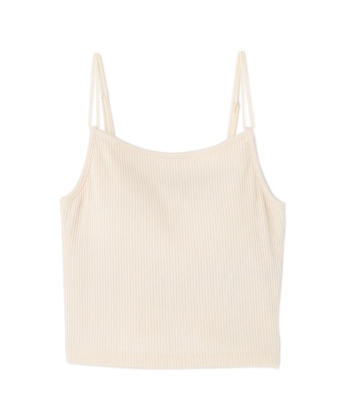 シンプルなデザインのカップ付キャミソール。さらっとした心地いい三角テレコ素材を使用しています。 細い肩紐とすっきり開いたネックラインで抜け感があります。 短い丈なのでハイウエストボトムとも相性抜群。 インナーに困ることなく1枚で着用できるカップイン仕様は、シアーシャツ、ジレ、ジャケットなどのインナー使いに便利です。