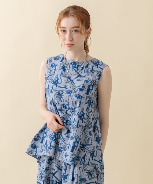 大人の雰囲気を醸し出す水彩タッチの街柄ブラウス。 ○POINT ・柔らかくもハリのある綿100%素材を使用。 ・総柄ですが、落ち着きのあるトーンでまとめた柄は華やかになり過ぎません。 ・胸元のタックから広がるフレアは柔らかいドレープを生み出してくれます。 ○STYLING ・コーディネートのメインにも引き立て役にもなる総柄ブラウスは、シンプルボトムスからカラースカートまで、合わせ易いアイテムが豊富です。 ・【cloche 街柄綿パンツ(No.84530)】とセットアップでお召いただけます。 裏地:なし 光沢:なし 伸縮性:なし 透け感:あり 生地の厚さ:普通 ポケット:なし 【cloche】 ”可愛くお洒落に”に応える、よりリアルな大人可愛いアイテムを提案します。